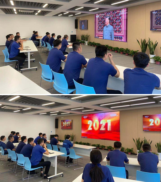 上午8:00,全體(tǐ)參會人員共同觀看慶祝中(zhōng)國(guó)共産(chǎn)黨成立100周年大會視頻直播,聆聽了習總書記重要講話。